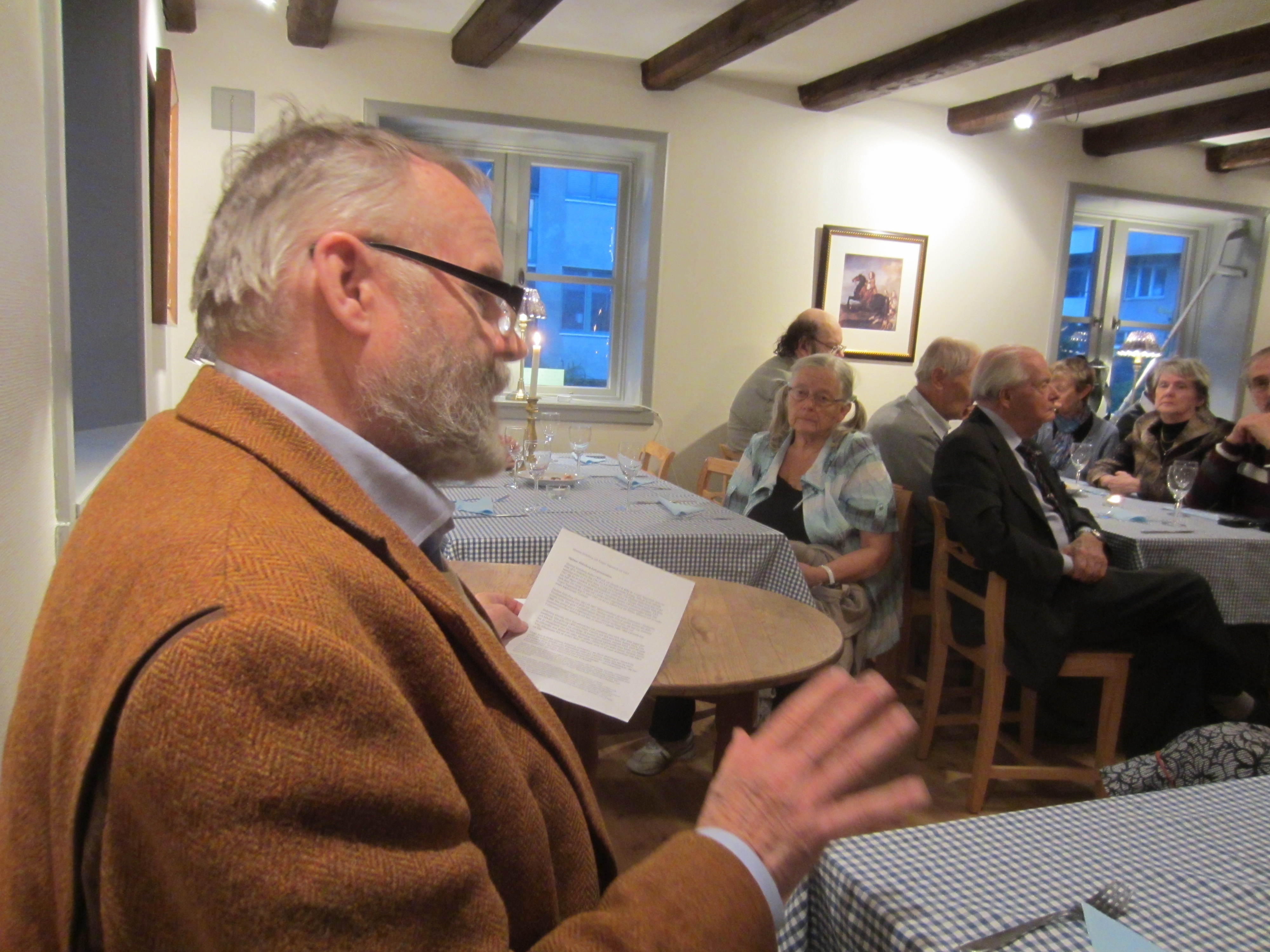 Professor em. Nils O. Sjöstrand talade om Hjalmar Söderberg – hans liv och författarskap – och samarbetet med Torgny Segerstedt. Foto: Eskil Malmberg