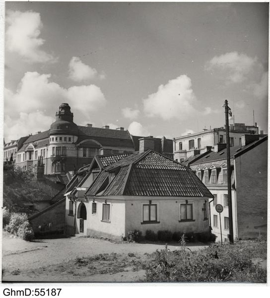 Drottning Kristinas Jaktslott på sin ursprungliga plats vid Övre Kyrkogatan och Södra Liden. Från källaren skulle det ha funnits en hemlig gång till Kommendantsbostaden – nuvarande Länsresidenset. Foto: Göteborgs Stadsmuseum.