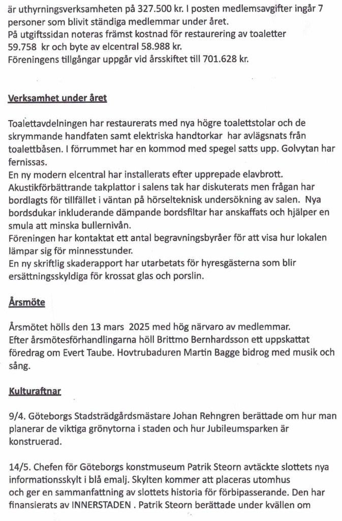 Här följer 2025 års Verksamhetsberättelse, som presenterades för medlemmarna vid föreningens årsmötet den 18 februari 2026.