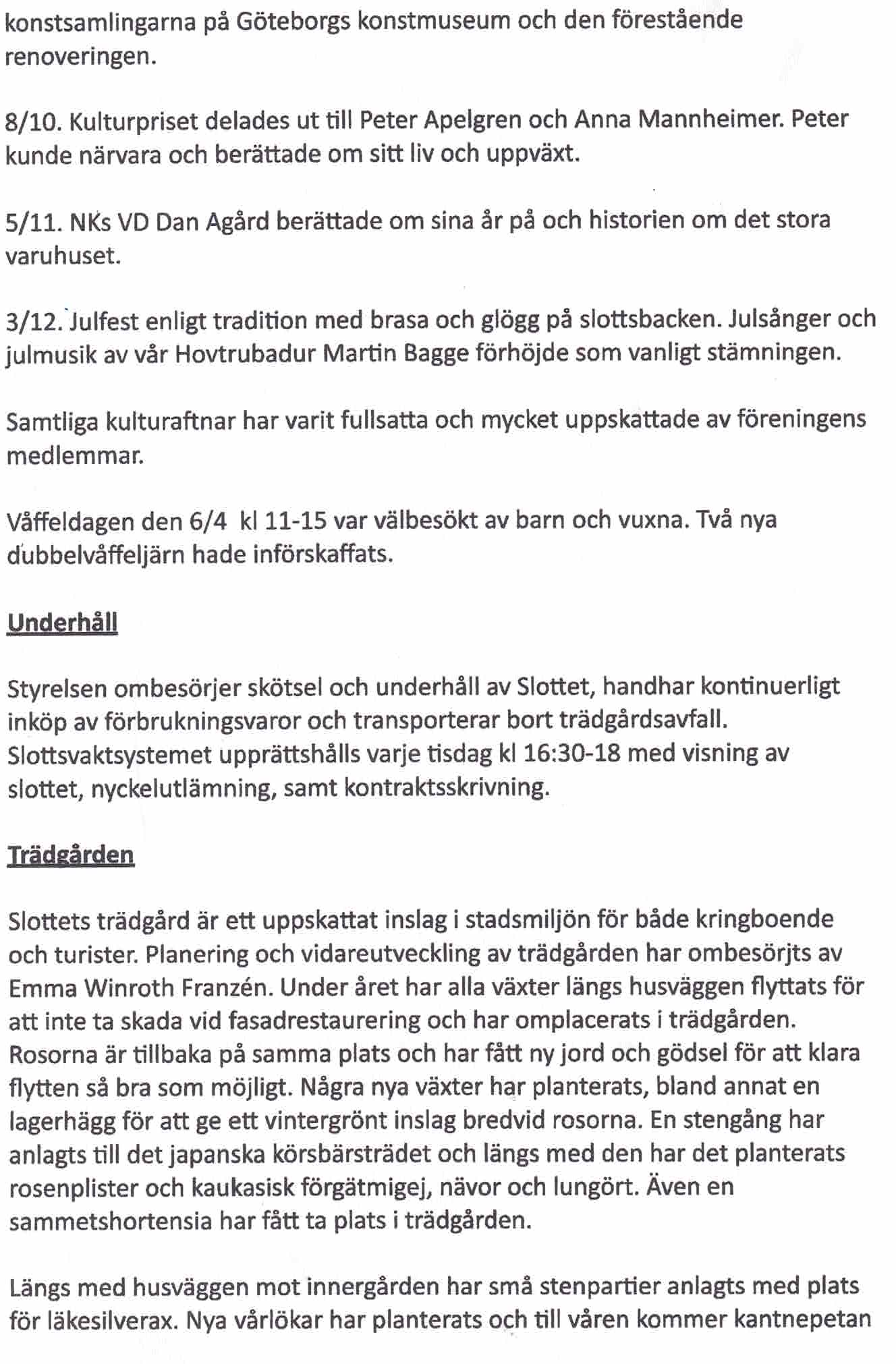 åter på plats framför rosorna tillsammans med lammöron. En plan finns att anlägga en gång till flaggstången, så att man inte behöver trampa rakt i bergenian! Övrig trädgårdsskötsel, som ombesörjts av styrelsen under året, är också gräsklippning, häckklippning, krattning och bortforsling av trädgårdsavfall.